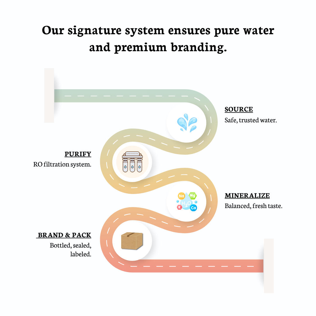 Our 4 Step Process guarantees water that’s clean, mineral-rich, and beautifully branded for you.